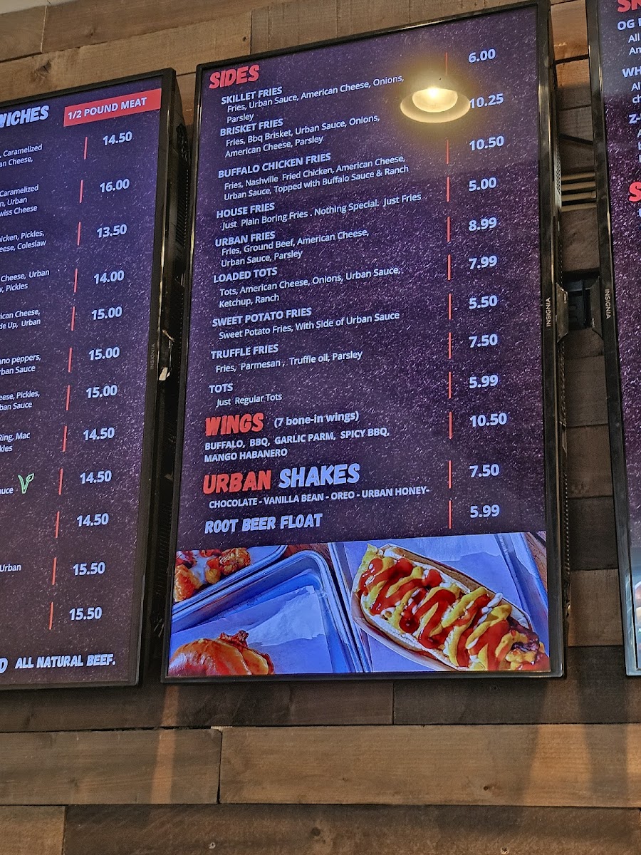 The menu's balance of innovative flavors and classic American comfort is evident through customer favorites like the spicy Buffalo Chicken Sandwich and indulgent patty melts. Complement your meal with their creamy Urban Shakes, available in chocolate, vanilla bean, Oreo, and Urban Honey, creating a perfect finish.